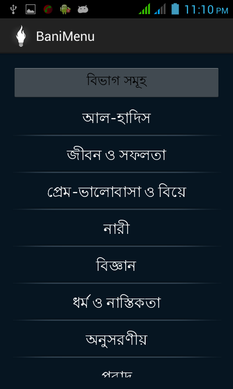 বাংলা বাণী [ Bangla Bani ]: জ্ঞানী বা বিখ্যাত ব্যাক্তিদের দরকারী বাণী সম্বলিত একটি এ্যাপ । বিভিন্ন বিষয় যেমন জীবন , প্রেম ভালোবাসা নিয়ে বিভিন্ন প্রেক্ষাপটে গুনীজনরা যেসব ভাবগম্ভীর বা মজার মজার মন্তব্য করে গেছেন , তারই একটি কালেকশন বাংলা বানী ।