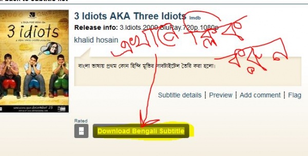 আজকের টিউনে বলার বেশী কিছু নেই, সহজ কথায় হিন্দি মুভি 3 Idiots (2009) এর জন্য বাংলা ভাষায় একটি সাবটাইটেল তৈরী করেছি। যেটি টেকটিউনস্ এর সকল বন্ধুদের উপহার হিসেবে নিয়ে এসেছি। সাবটাইটেলটি ব্লুরে রিপের উপযোগী করে তৈরী করা হয়েছে যার সাইজ মাত্র, 73.88 কিলোবাইট।