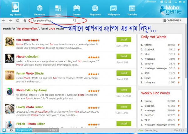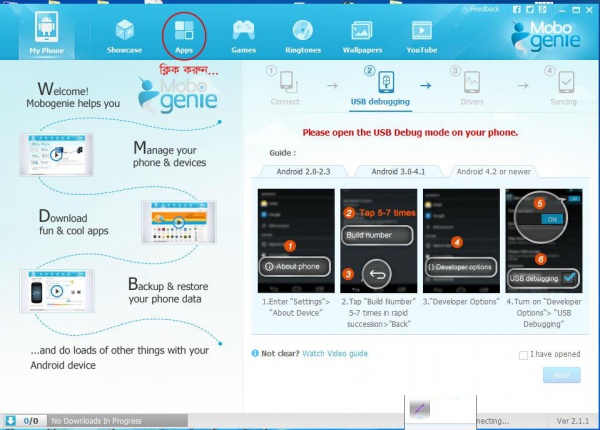 প্রথম এখান থেকে Mobogenie সফটওয়ারটি ডাউনলোড করে নিন , তারপর অন্যন্যা সফটওয়ার ন্যায় ইন্সটল দিন। তারপর চালু করুন ।