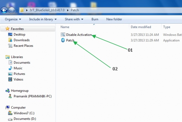 পিসি রিস্টাট করার পর ডাউনলোড করা ফোল্ডার থেকে প্যাচ ফোল্ডারে যান। প্রথমে Disable Activation রান করুন। তারপর Patch রান করুন। নিম্মে চিত্রে দেখান হল কিভাবে কাজ করবেন