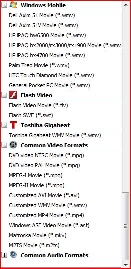 আর আউটপুট ফরম্যাট এর ক্ষেত্রে প্রায় সকল ধরনের পোর্টেবল প্লেয়ার যেমনঃ apple iphone,ipad,android,sony psp,ps3,walkman,blackberry,nokia,windows mobile,xbox 360 ছাড়াও অন্যান্য পোর্টেবল প্লেয়ার এ ভিডিও কনভার্ট করা যায়। তাছাড়া বিভিন্ন কমন ভিডিও ফরম্যাটতো রয়েছে।যেসব ফরম্যাট সিলেক্ট করতে পারবেনঃ