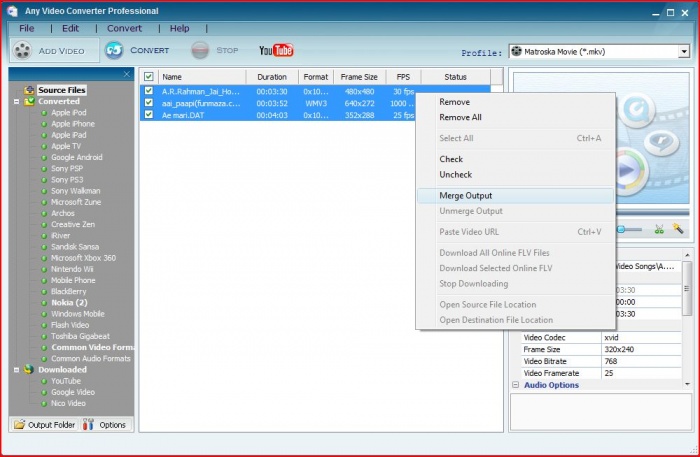 আপনি চাইলে একাধিক ভিডিও ফাইল এর আউটপুট একসাথে করতে পারেন।প্রথমে যে ফাইলের আউটপুট একসাথে করতে চান সেগুলো add video দিয়ে প্রোগ্রাম এ add করুন। তারপর প্রোগ্রামগুলো একসাথে সিলেক্ট করে রাইট বাটন চাপুন। তারপর merge output সিলেক্ট করুন। তাহলে একটার পর একটা ফাইলের আউটপুট একসাথে হবে। ফাইলগুলো যে অর্ডার এ থাকবে আউটপুটেও সে অর্ডার থাকবে। মাউস দিয়ে drag করে অর্ডার চেঞ্জ করতে পারেন।