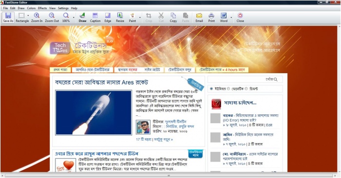 সফটওয়্যারটি দিয়ে টেকটিউনের প্রথম পাতার একটি ছবি তুলেছি। অরিজিনাল ছবিটি প্রায় 1.2MB. রিসাইজ করে এখানে দিলাম।