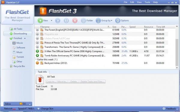 এক্সট্রা ফিচারঃ Bit Torrent Client Supported. তার মানে আপনি যেকোনো টরেন্ট ফাইল এটা দিয়ে নামাতে পারবেন। এক্সট্রা ভাবে আপনাকে Bittorrent বা utorrent Software ব্যাবহার করতে হবে না। এটি সম্পুর্ন ফ্রি!! গুগলে Flashget লিখে সার্চ দিলে ওদের সাইটের Address পেয়ে যাবেন।