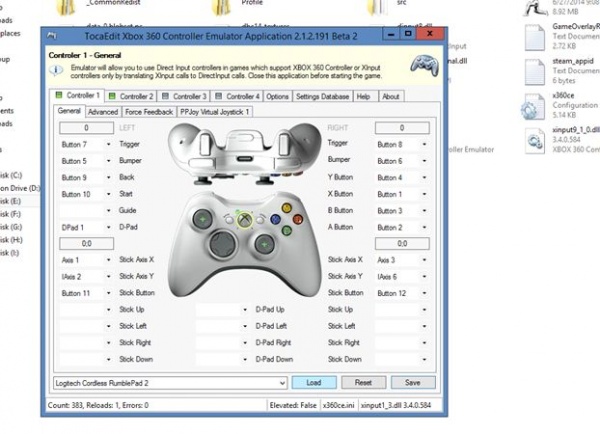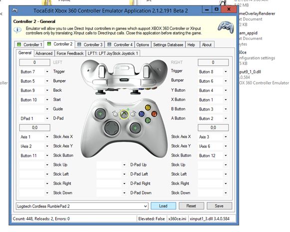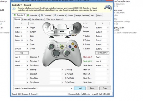 controller 1 সিলেক্ট করুন এবং logitech cordless rumblepad 2 লোড করুন।