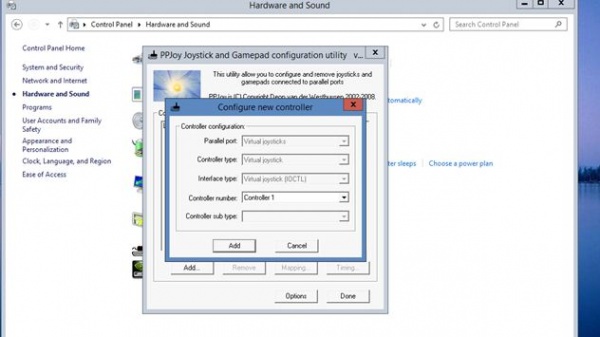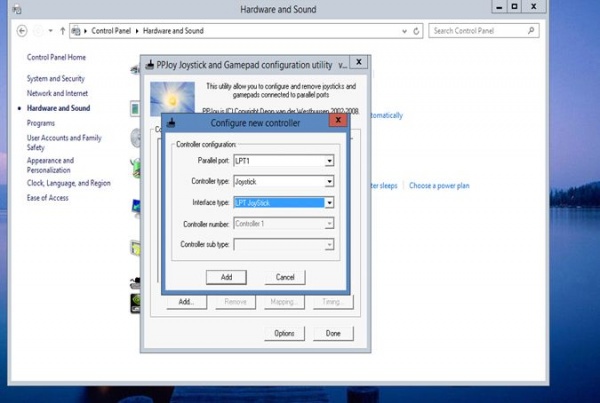 parallel port joystick এ যান তারপর create virtual joystics তারপর add a lpt parallel port joy stick