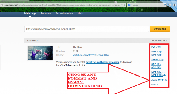 পেজটাতে আপনার কাঙ্খিত ভিডিও ডাউনলোডের অনেক গুলা ফরম্যাট পাবেন,