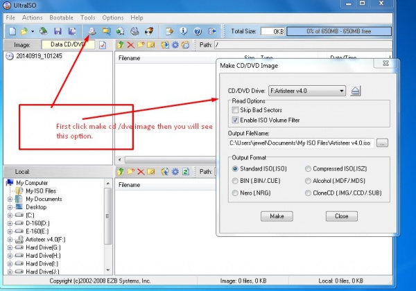 তারপর MAKE বাটন আ ক্লিক করুন । তারপর দেখবেন আপনার আই এস ও ফাইল টি কপি হচ্ছে । আপনার আই এস ও ফাইল টি হয়ে যাবার পর আপনি ইচ্ছে করলে সেটা আপনার কম্পিউটার থেকে সিডি ড্রাইভ না থাকলে ও সিডি ড্রাইভ এঁর মত কাজ করাতে পারবেন সেই আই এস ও ফাইল টি । নিচের ছবি টি দেখুন।