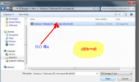 এরপর ISO ফাইল টিতে ক্লিক করে Open-এ ক্লিক করুন।