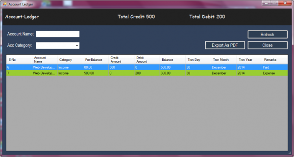 3. Account ledger and daily, monthly, yearly transaction report.