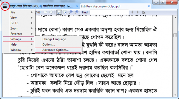প্রথমে নিচের চিত্রের মতো করে বামপাশে উপরের কর্ণারে ক্লিক করে Settings > Advanced Options এ ক্লিক করুন।