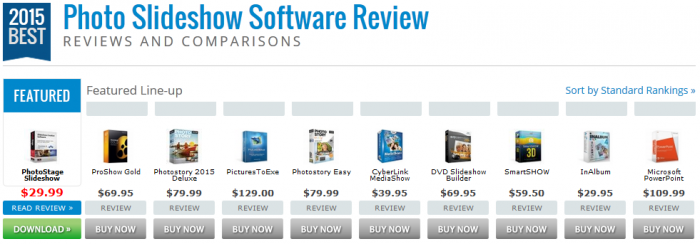 ২০১৫ সালে তালিকায় শীর্ষে থাকা স্লাইডশো তৈরীর সফটওয়্যারগুলোর নাম এবং মূল্য তালিকা নিচে দেওয়া হলো। একটি বিষয় মনে রাখবেন দাম বেশি হলেই কিন্তু সেটা কাজে ভালো হয় না। ব্যবহারকারীদের অভিজ্ঞতার আলোকে এবং সফটওয়্যারগুলোর ফিচারের ভিত্তিতে নিচের লিস্টটি করা হয়েছে।