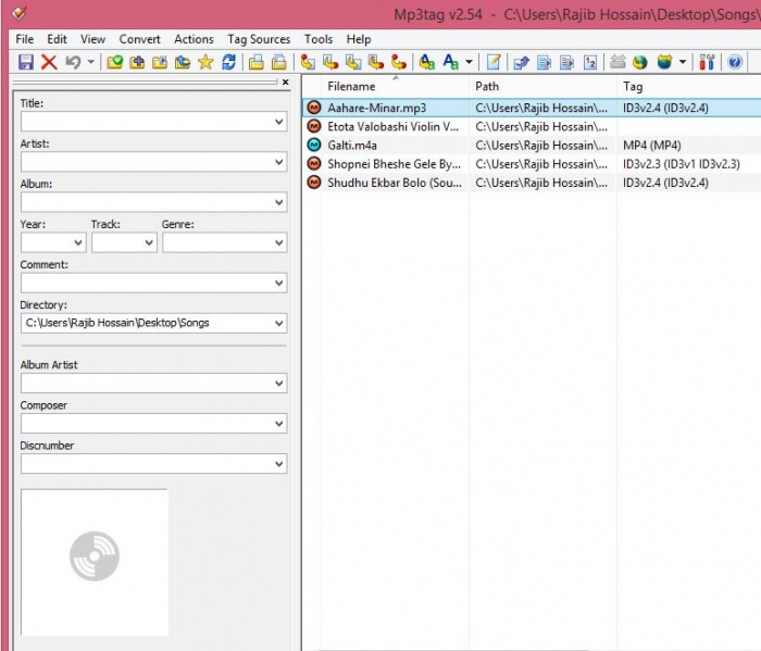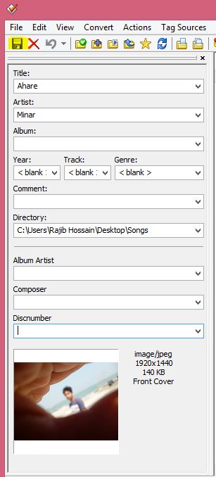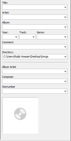 সিলেক্ট করার পর বাম পাসের এই বার থেকে নিজের পছন্দ মত Title, Artist, Genre, Comment, বা পিকচার যোগ করুন। পিকচার যোগ করতে CD এর মত ঐখানে RIGHT BUTTON ক্লিক করে ADD COVER দিয়ে পিকচার যেটি দিতে চান সিলেক্ট করে দিন।
