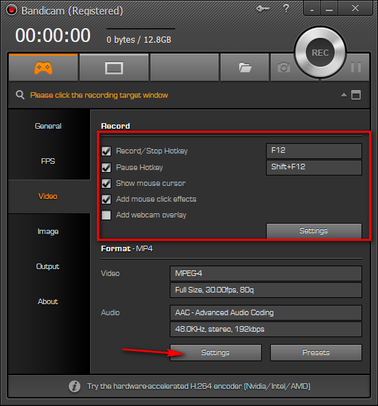 সফটওয়্যার টি মিনিমাইজ করে গেম চালু করে কিবোর্ড থেকে F12 কী প্রেস করলে রেকর্ডিং শুরু হবে Shift+F12 চাপলে পস হবে ।