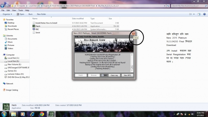 ধাধাপ ৪: শেষ হলে My File_N_E_R_O_2_0_1_5 এর Patch ফাইল Run টি করান।