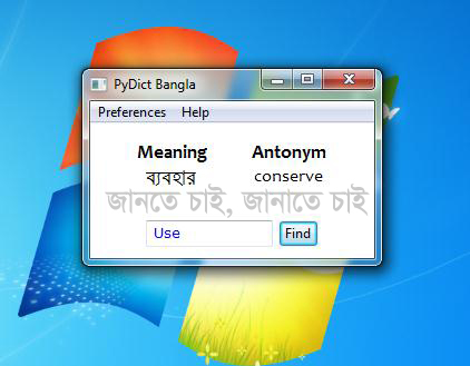 ২। PyDict Bangla : আমি অনেক গুলো ডিকশোনারী ব্যবহার করেছি কিন্তু যখন এই সফট টির দেখা পেলাম তখন থেকে অন্য গুলো ব্যবহার বাদ দিয়েছি। নিচে দেখুন সফটির এক ঝলক। ডাউনলোড