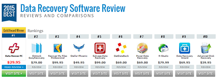 ২০১৫ সালে তালিকায় শীর্ষে থাকা ডাটা রিকোভারি সফটওয়্যারগুলোর নাম নিচে দেওয়া হলো। ব্যবহারকারীদের অভিজ্ঞতার আলোকে এবং সফটওয়্যারগুলোর ফিচারের ভিত্তিতে নিচের লিস্টটি করা হয়েছে। সব মনে রাখবেন দামে বেশি হলেই কিন্তু সেটা কাজে ভালো নাও হতে পারে। দাম দিয়ে পণ্যের বিচার করাটা সব সময় ঠিক নয়।