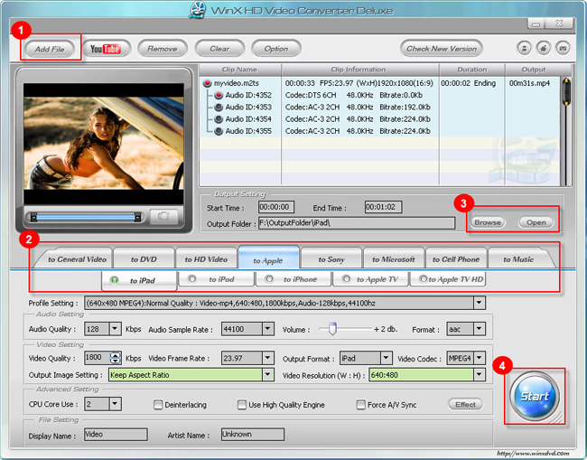 WinX HD ভিডিও কনভার্টার ডিলাক্স এর কিছু ফিচার :