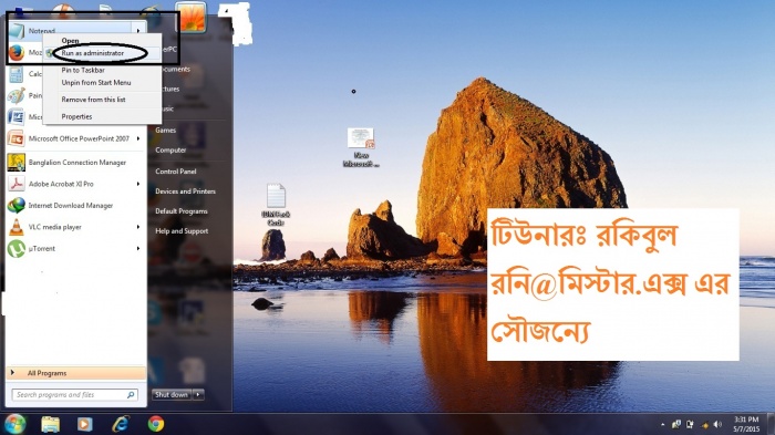 ধাপ:৬. এই ধাপটিতে Windows মেনু থেকে Notepad ক্লিক করে Run as Administrator দিন।