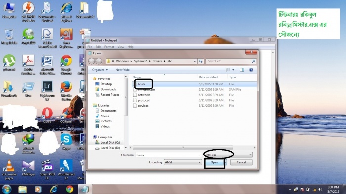 এখন Notepad এ C:\Windows\System32\drivers\etc এই ফোল্ডার hosts ফাইলটি Open করুন।