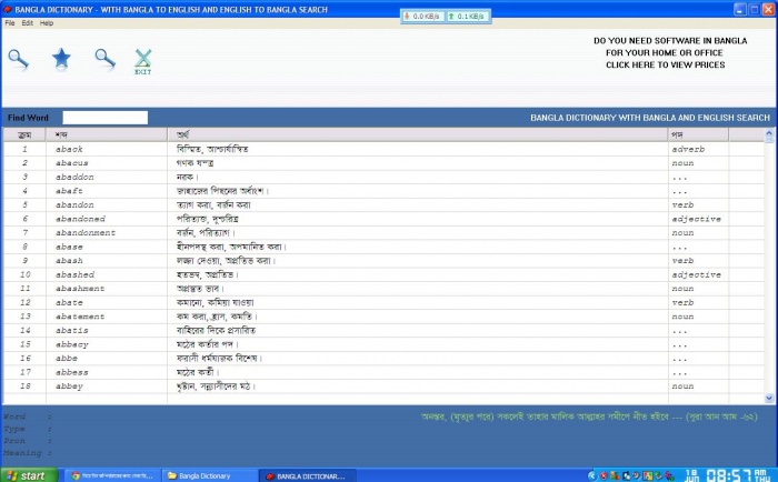 আসসালামুয়ালাইকুম। আসা করি সবাই ভাল আছেন। আজ আপনাদের পিসি এর জন্য এমন একটি সফটওয়্যার দেব যা থেকে প্রায় সব বাংলা -ইংরেজি এবং ইংরেজি থেকে বাংলা শব্দ বের করা যায়। আমার দেখা সবথেকে ভাল ডিকশনারি। এর বিশেষ সুবিধা হল এটা ইন্সটল করার দরকার হবে না। সরাসরি open করলেই হবে।