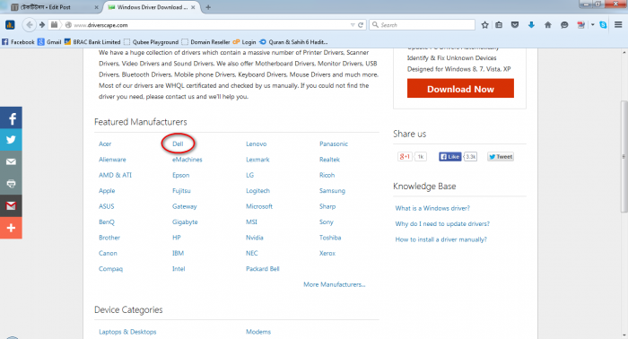 ধুরুন আপনার নোটবুক এর মডেল Dell Inspiron N4110. তাহলে প্রথমে ওয়েবসাইট এ প্রবেশ করুন। তারপর সিলেক্ট করুন Dell।