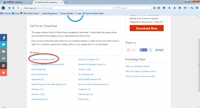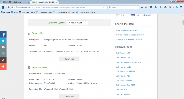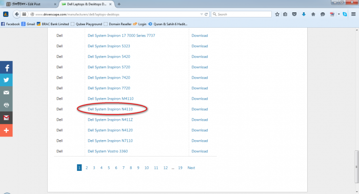 এরপর সিলেক্ট করুন Laptops & Desktops. দেখবেন অনেক গুলো মডেল নাম্বার চলে এসেছে। সেখান থেকে খুজ বের করুন Inspiron N4110 তারপর সিলেক্ট করুন তারপর দেখবেন সকল ড্রাইভার শো করছে।