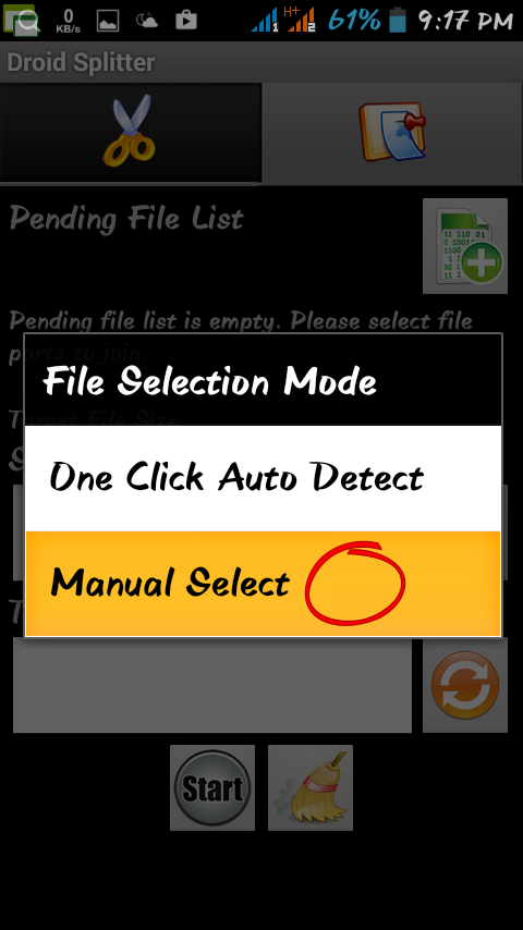 এবার pending file list লেখারপাশে '+' (প্লাস) icon টিতে ক্লিক করে Manual Select করুন।