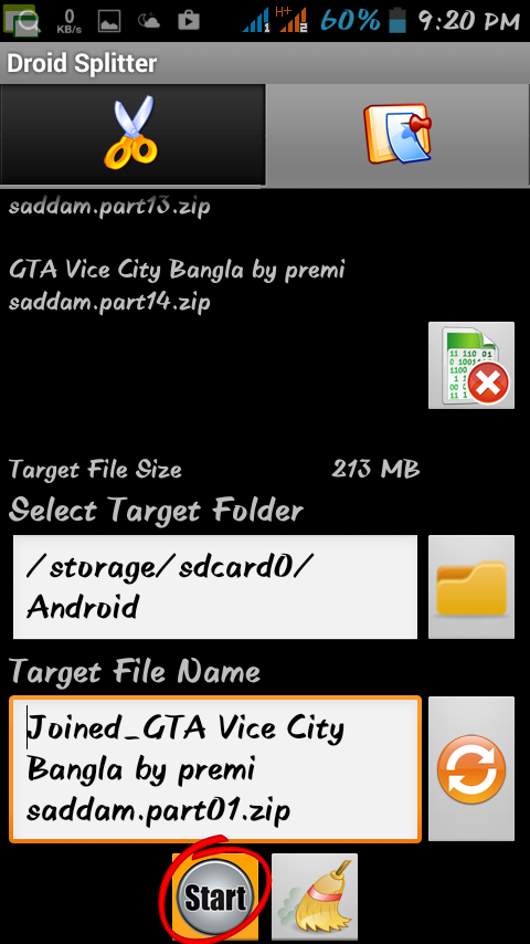 ব্যাসসসসসসস এবার নিচের start বাটনে ক্লিক করলেই শুরু হবে ফাইলে আঠা মাখানোর কাজ/আই মিন file join শুরু হবে ৷