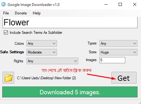 ৭. Images Option এ যত গুলো ইমেড ডাউনলোড করতে চান সেই সংখ্যা গুলো লিখুন। যেমন আমি লিখলাম: ৫