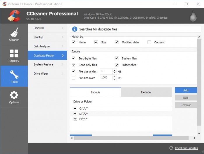 ডুপ্লিকেট ফাইন্ডারঃ এই ভুল আমরা সবাই কম বেশি করি 😀 একই গান/মুভি/ফাইল বিভিন্ন ড্রাইভে কপি করে রাখি। ফলে দেখা যায় একই জিনিসে হার্ড ড্রাইভ জ্যাম হয়ে থাকে। CCleaner professional এর সাহায্যে এই ডুপ্লিকেট ফাইল গুলো এক ক্লিকেই খুজে বের করা সম্ভব। যাতে আমাদের ড্রাইভের একটা বড় অংশ খালি করা সম্ভব।
