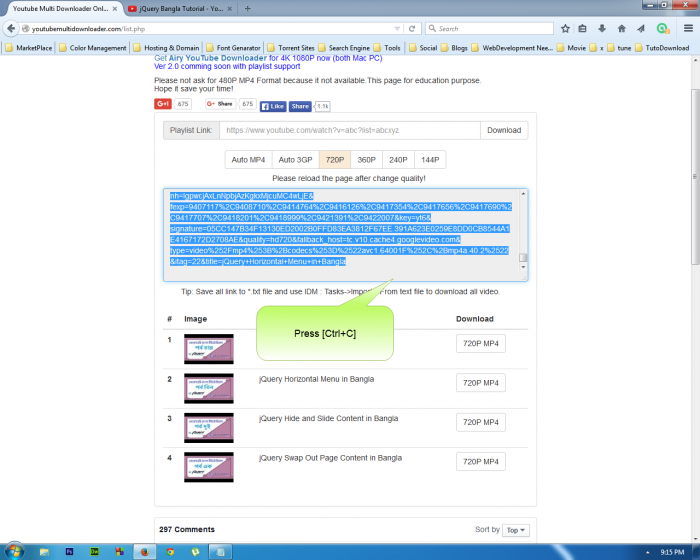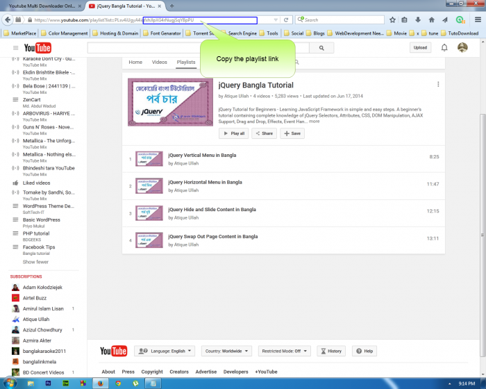 এবার ইউটিউব থেকে যে প্লেলিষ্টটি ডাউলোড করতে চান তার লিংকটি কপি করুন।