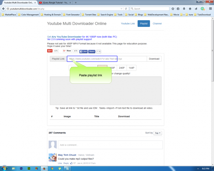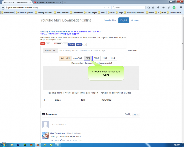 আজকে মুলত আমি আপনাদের একটি ওয়েব সাইটের সাথে পরিচয় করিয়ে দিব, যেখান থেকে আপনি অনেক সহজে ইউটিউব থেকে যেকোনো ভিডিও ডাউনলোড করতে পারবেন, এবং একই সংগে ইউটিউব প্লেলিষ্টের সকল ভিডিও ডাউনলোড করতে পারবেন।