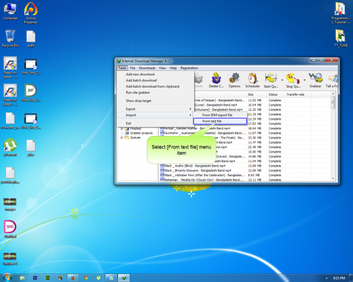 এবার IDM ওপেন করুন। তারপর Task>Import>From Text File এ ক্লিক করুন।