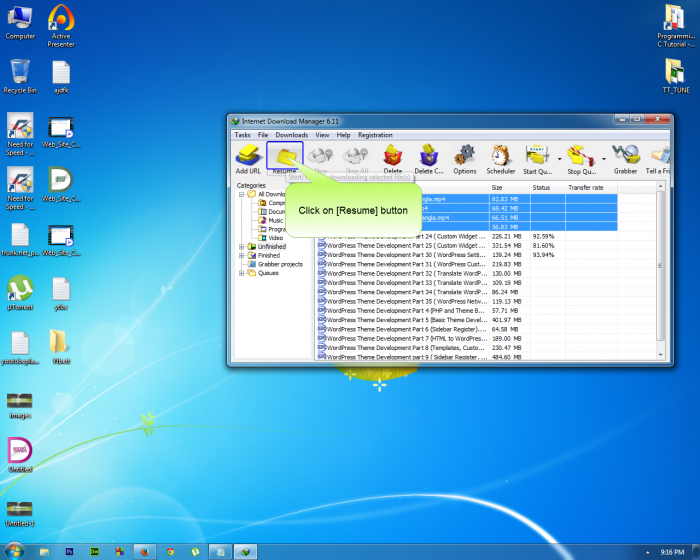এবার ওকে করে IDM এর Unfinished এ ক্লিক করুন। যে ভিডিওগুলো ডাউনলোড করতে চান সেগুলো রিজিউম করে দিন। ব্যাস কাজ শেষ।