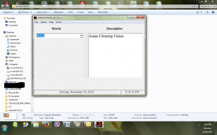 আসসালামুলাইকুম। আশা করি সবাই ভাল আছেন। অনেকদিন পরে টেকটিউনসস এ টিউন করতে বসলাম। অনেক দিন পর ফিরে আসালাম তাই ছোট একটি টিউন দিয়ে শুর করলাম।আজকে আপনাদের সামনে পরিচয় করাবো ছোট একটি abbreviation এর সফটওয়্যার টি। এই সফটওয়্যার এ পাবেন অনেক abbreviation। যা আপনার যে কোন সময় কাজে লাগতে পারে। যখন abbreviation এর দরকার হবে তখন এই software টি কাজে লাগাতে পারবেন।এই সফটওয়্যারে টি আমিই তৈরি করেছি।