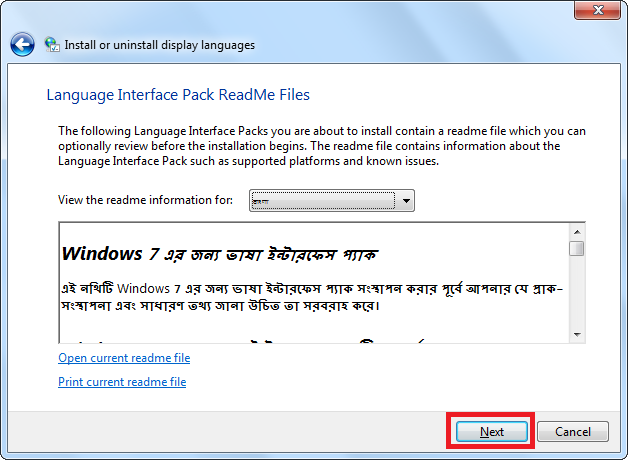 Languages pack ডাউনলোড করুন এবং ইনেস্টল করুন।