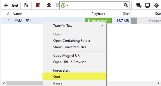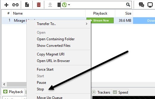 প্রথমে আপনার ডাউনলোড ফাইলটির উপর রাইড বাটন ক্লিক করে Stop করুন। নিচের চিত্রে মত