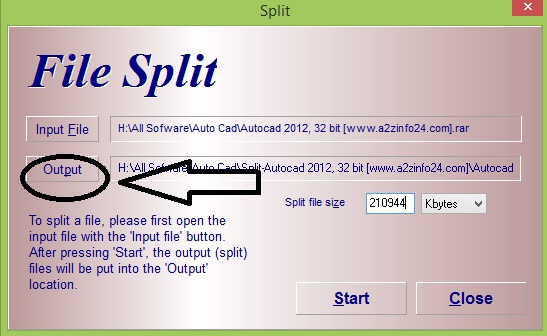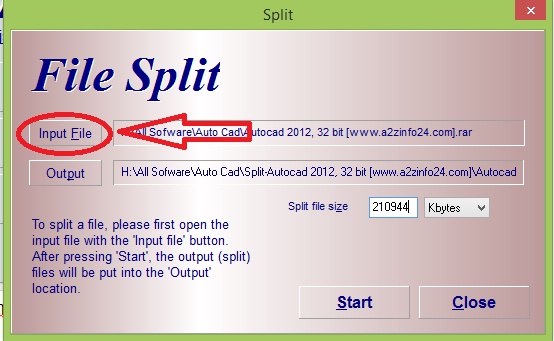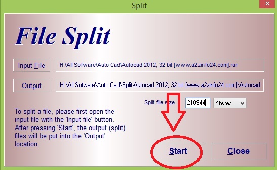 ৪. Splite Button এ ক্লিক করুন। তারপর ইনপুট করান যে ফাইলটিকে ভাগ করতে চান।