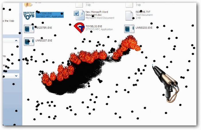 ৩. বন্দুক সিলেক্ট করে লেফট ক্লিক করলে আগুনের বন্দুক সিলেক্ট হবে,তারপর আগুন দিয়া আপনার ডেক্সটপ জালায়া পোরায়া অঙ্গার করে দিন,আগেই বলেছি জরিমানা আমি দিব।