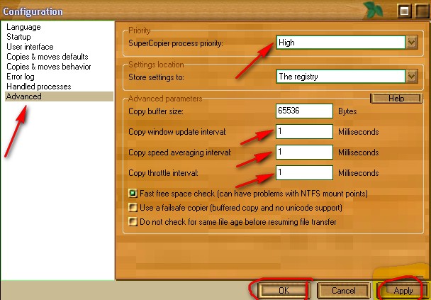 Supercopier process prioty.এখানে High করে দিন এর পর Copy window update intervat ওখানে 1 করে দিন