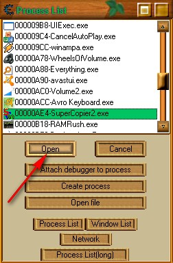 Process list আসবে এখানে 00000AE super copier2.exe খুজে সিলেক্ট করুন আর Open এ ক্লিক করুন এবার আবার নিচে ফলো করুন.