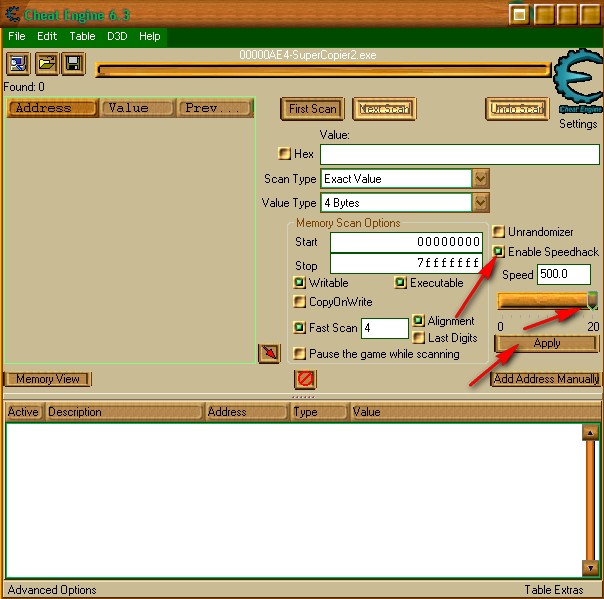 লাল টির চিহ্ন ফলো করুন এখানে Enable speedhack টিক চিহ্ন করে দিন নিচে লেখা আছে Speed টেনে 500.0 করে Apply করে দিন এবার কাজ শেষ এখন মিনিমাইজ করে রাখুন আর কপি করুন যতবার কম্পিউটার বন্ধ করবেন ততবার CheatEngine সফটয়্যারটি ওই রকম করে দিবেন এবং মিনি মাইজ করে রাখবেন।