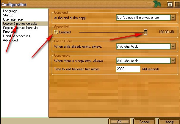 copies & moves defaults ক্লিক তার পর Enabled টিক চিহ্ন দিন তার পর 100.00mb করে দিন আবার টিক চিহ্ন ওঠে দিন.আবার নিচে ফলো করুন..