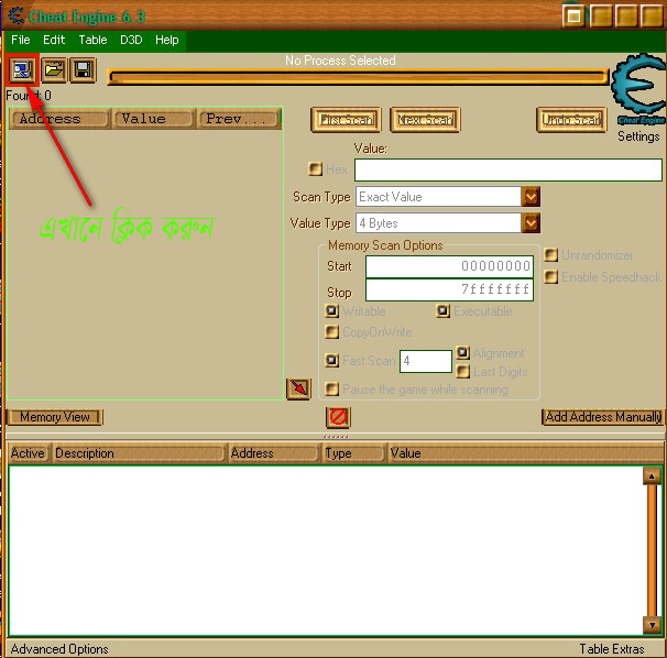 হয় ধাপ Cheat Engine softwer টি Open করুন আর নিচে ফলো করুন.