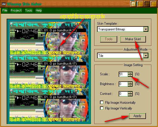 প্রথমে Scale: 1 দিয়ে Apply করুন এবং বাম পাশ্বে ফটোটি সঠিক ভাবে ভালো ভাবে বসে নিন তার পর Make Skin এ ক্লিক করুন এবং লাল চিহ্ন গুলো লক্ষ করে কাজ করুন নিচে ফলো করুন এই রকম আসবে.