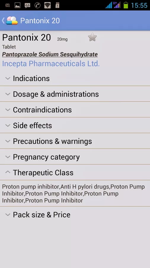 1. Drugs details (Indications, Dosage & administrations, Contraindications, Side effects, Precautions & warnings, FDA pregnancy category, Therapeutic class, Pack size & price).