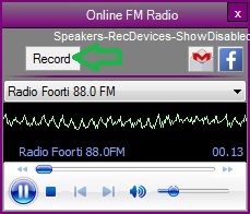 ৭। এখন "Online FM Radio" থেকে "Record" এ ক্লিক করেন।
