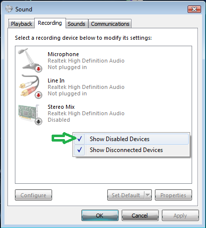 ৩। "Show Disabled Devices" ক্লিক করার পর "Stereo Mix" Option দেখতে পাবেন।