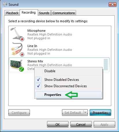 ৫। "Stereo Mix"এর উপরে ডান বাটনে ক্লিক করে "Properties" এ ক্লিক করেন।